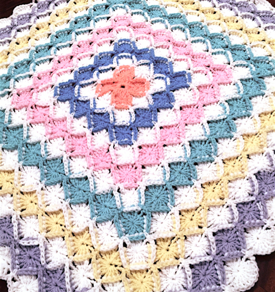 so I started with a unique granny square in the center then added rows of my favorite crochet stitches until