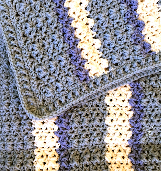 I used leftover chunky yarn and made a giant granny square baby blanket!