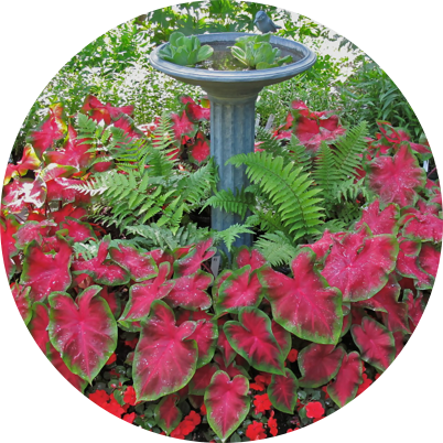 Break away from the overused Boston fern and try something more creative like Dryopteris undulata ‘Robusta’ (robust male fern). Deeply divided dark green fronds grow two to three feet tall, creating a sturdy, upright habit. Hardy in zones 4-8, the robust male fern can be overwintered in a protected location outside and then reused year after year. It’s semi-evergreen arching fronds even hold up well during rainy periods. Traditionally, hanging baskets work great on porches, but try a few fern-filled planters on shepard’s hooks or dangling from long S-shaped hangers suspended from tree branches. Swaying in woodland gardens, the hanging fern adds a unique dimension between the ground cover and the canopy. Every spring, birds find my floating gardens irresistible for nesting and nurturing their young. To help retain moisture, mix water retaining gel into the soil before potting and top dress with decorative mulch. Divide mature plants in spring or summer.