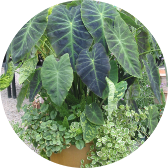 Next I visit Grandpa's Nursery and Gardens in Sodus. If you need magnificent houseplants or tropicals for the home or office, this is a great place to shop. The cut leaf philodendron 'Xanadu' with evergreen, glossy foliage is highly versatile. It can be planted in the shade garden, grown in containers outdoors, or utilized as an indoor plant. Philodendrons belong to the arum family (Araceae), which includes many popular indoor plants such as Swiss cheese plant (Monstera), peace lily (Spathiphyllum), dumb cane (Dieffenbachia) and Chinese evergreen (Aglaonema). For edible fruit, Ficus carica 'Black Jack' is a semi-dwarf form that produces especially sweet, elongated purple fruit in summer. It loves full sun and can be maintained at 6 feet tall with annual pruning. Agave desmenttiana 'Variegata' (Variegated Dwarf Century Plant) is a medium sized agave that forms an upright urn shaped rosette with 3 foot long by 4 inch wide leaves. The foliage is bright green with yellow variegation along the margins. It loves full sun and is drought tolerant. For an instant tropical look, try fast growing Musa acuminata 'Enano Gigante' (Dwarf Giant Banana). This perennial has large dark green leaves with red markings on new foliage while mature leaves are solid green. It loves sun and reaches a height of 6-8 feet. If you like reseeding annuals, definitely try Verbena bonariensis. This see-through plant produces purple blossoms above swaying 4-5 foot stems. It lures butterflies, loves full sun and looks great in a vase. An interesting tender perennial is Evolvulus glomeratus. Its delicate sky-blue flowers are breathtaking in a hanging baskets or as a bedding plant forming mounds 9-18 inches tall. For mid summer to fall interest, try Tibouchina urvilleana with stunning purple flowers and felt-like foliage. It can be grown in a pot then overwintered indoors. For a whimsical look for sun or shade, try the dwarf Caladium 'Gingerbread'. It has green and white small to medium leaves with pink speckles and grows from 8-14 inches tall. Grandpa's stocks a large selections of gifts, garden supplies, pots and basils, basils, basils!