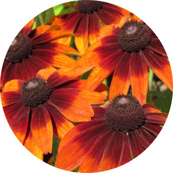Large orange and mahogany blooms of Rudbeckia hirta “ Autumn Colors’.