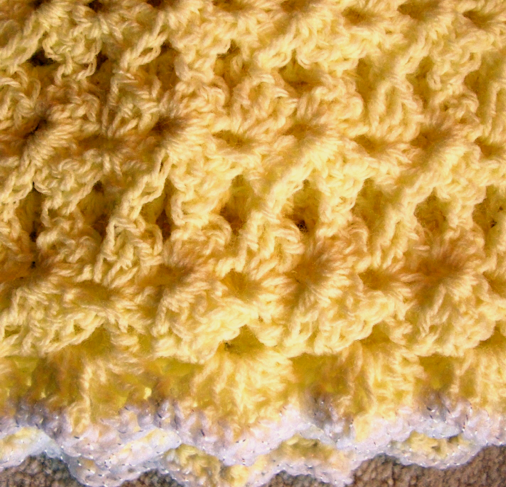 My recommendation: Follow the pattern for the “Standard Baby Blanket” which measures 36”X36”.