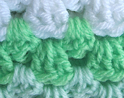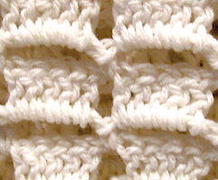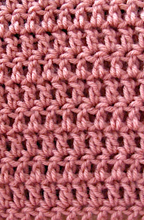 I made up this easy pattern using 2 rows of double crochets, then 1 row of double crochet, chain 1, skip next stitch, double crochet.