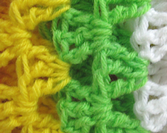 The pattern suggests pastel colors , but I used some leftover yarn for this colorful combination.