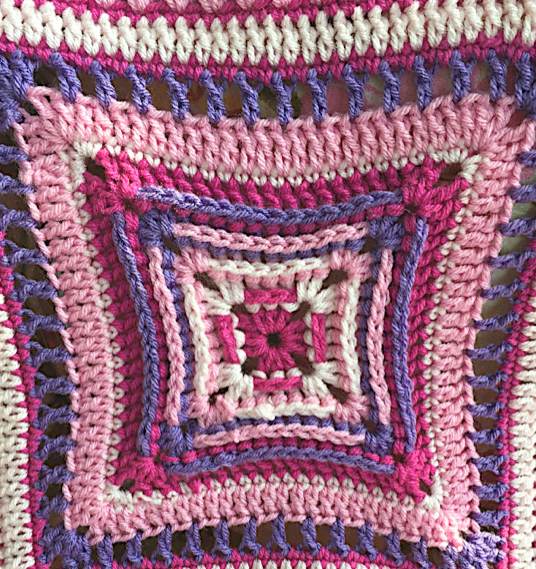 so I started with a unique granny square in the center then added rows of my favorite crochet stitches until