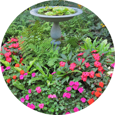 Break away from the overused Boston fern and try something more creative like Dryopteris undulata ‘Robusta’ (robust male fern). Deeply divided dark green fronds grow two to three feet tall, creating a sturdy, upright habit. Hardy in zones 4-8, the robust male fern can be overwintered in a protected location outside and then reused year after year. It’s semi-evergreen arching fronds even hold up well during rainy periods. Traditionally, hanging baskets work great on porches, but try a few fern-filled planters on shepard’s hooks or dangling from long S-shaped hangers suspended from tree branches. Swaying in woodland gardens, the hanging fern adds a unique dimension between the ground cover and the canopy. Every spring, birds find my floating gardens irresistible for nesting and nurturing their young. To help retain moisture, mix water retaining gel into the soil before potting and top dress with decorative mulch. Divide mature plants in spring or summer.