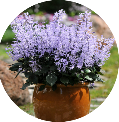 The abundant blooms of Mona Lavender Plectranthus complement the dark green leaves of this shade-loving plant.
