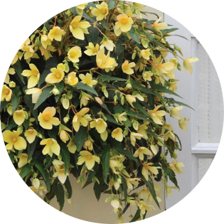Bottom: Lemon yellow flowers blanket Million Kisses Honeymoon Begonia in this hanging basket.