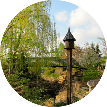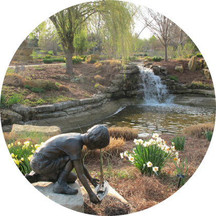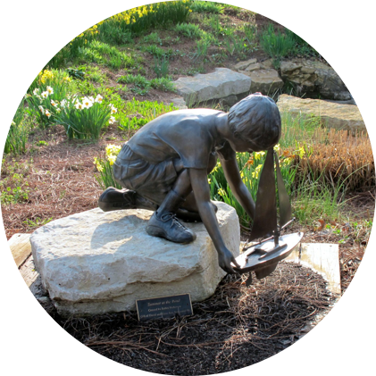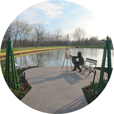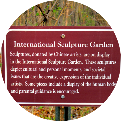 Picturesque flower gardens, water features, woodlands, prairie and abundant wildlife traverse 300 acres. An International Sculpture Garden, situated on a .4 mile woodland trail, displays Chinese artists’ sculpture. It represents an exchange of art between the United States and China to celebrate peace and friendship.