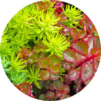 At Turnbull Nursery and Garden Center, mixed pots of sedum include three varieties – ‘Angelina’, ‘Blue Spruce’ and ‘Voodoo’.